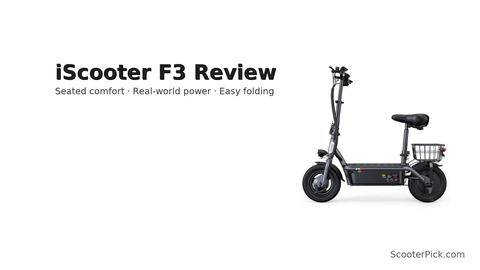 If you want a seated e-scooter that feels practical on everyday streets, the iScooter F3 deserves a close look. This iScooter F3 review walks through design, power delivery, range behavior, braking, and day-to-day usability so you can judge it with confidence. For specs, photos, and model-specific details, see the product page for the iScooter F3.