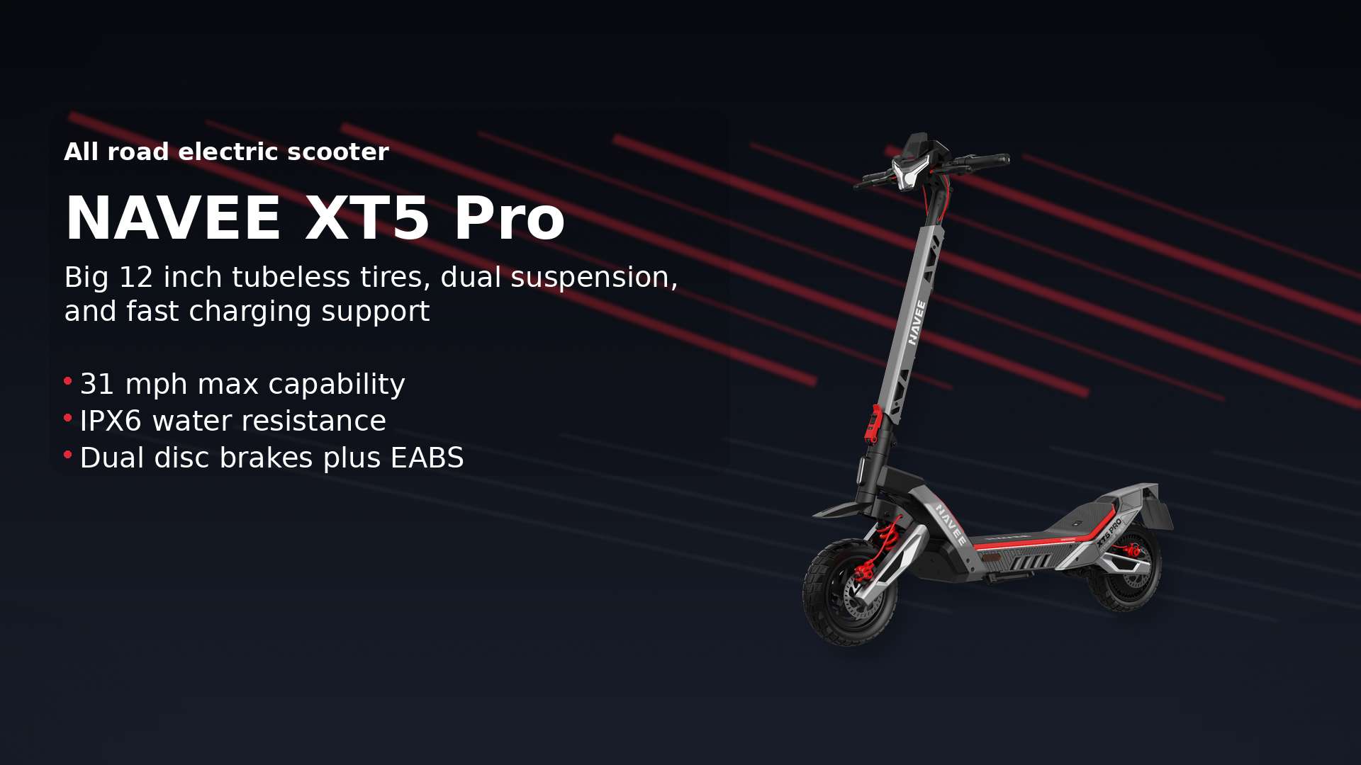 If your roads are rough and you want a scooter that feels planted, the NAVEE XT5 Pro makes a strong case. The big 12 inch tires and the front and rear suspension do a lot of the work, and the braking and lighting package looks complete for real road use. The optional fast charger also adds real convenience if you ride often.