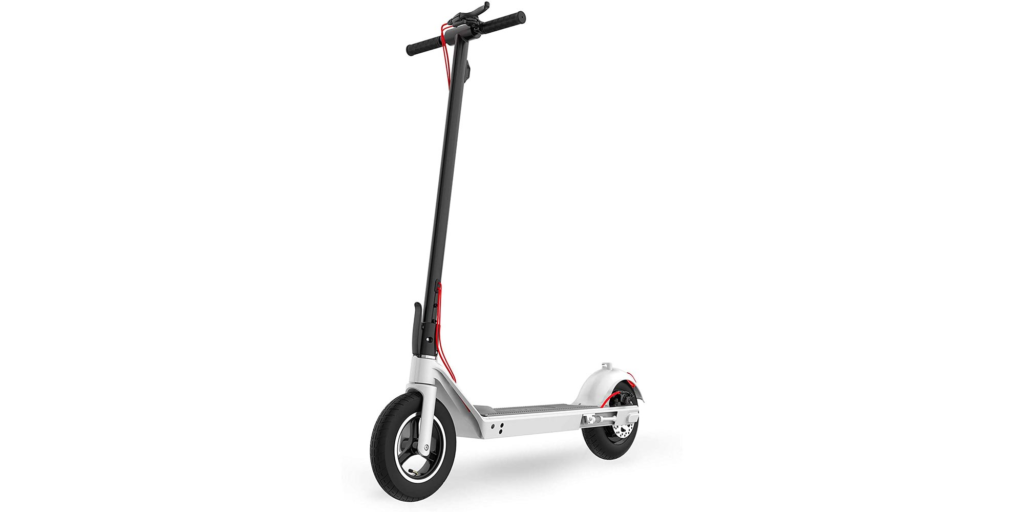 Cruising stability. The 10-inch front and 10.5-inch rear pneumatic tires do the heavy lifting for stability. They add gyroscopic steadiness, which helps the scooter track straight at its typical cruising speeds. The wheelbase and low deck settle the ride. At the upper end of the speed range, you should keep your stance athletic and your arms relaxed. As with most lightweight folders, firm inputs reduce wobble.