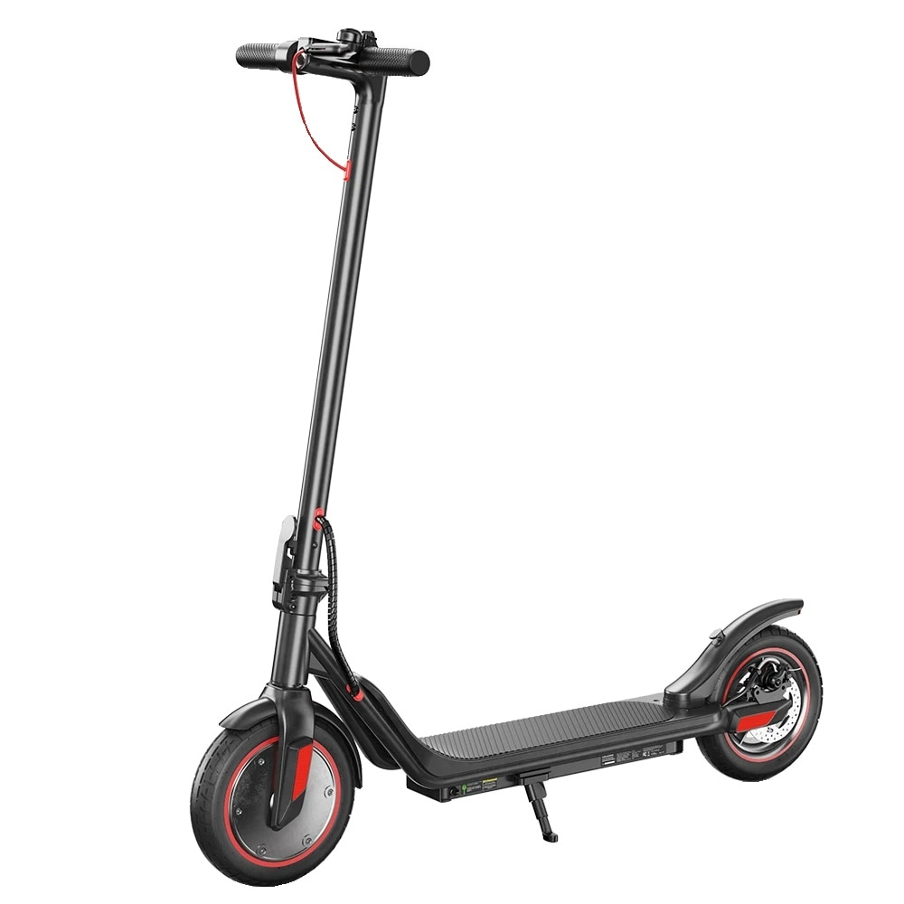 The iScooter i9M is a compact, foldable electric scooter designed for urban travel. It prioritizes portability, predictable handling, and low-maintenance ownership. You get a 500-watt front hub motor, a modest-capacity battery, and 10-inch pneumatic (air-filled) tires for a comfortable roll over city pavement. Because it weighs about 28.9 lb (13.1 kg), it can be carried up stairs or onto buses without too much strain. Altogether, it’s built for short to medium rides, campus hops, and multi-modal commutes rather than off-road adventures or high-speed thrills.